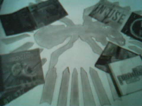 This is a drawing I did of the Prodigy cd cases. I had to cut a photocopy of the albums and draw the other half to it so it still looks like the photocopy.